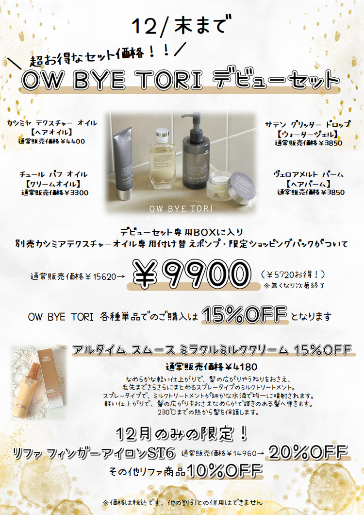 ※ご不明点はサロンまでお問い合わせください