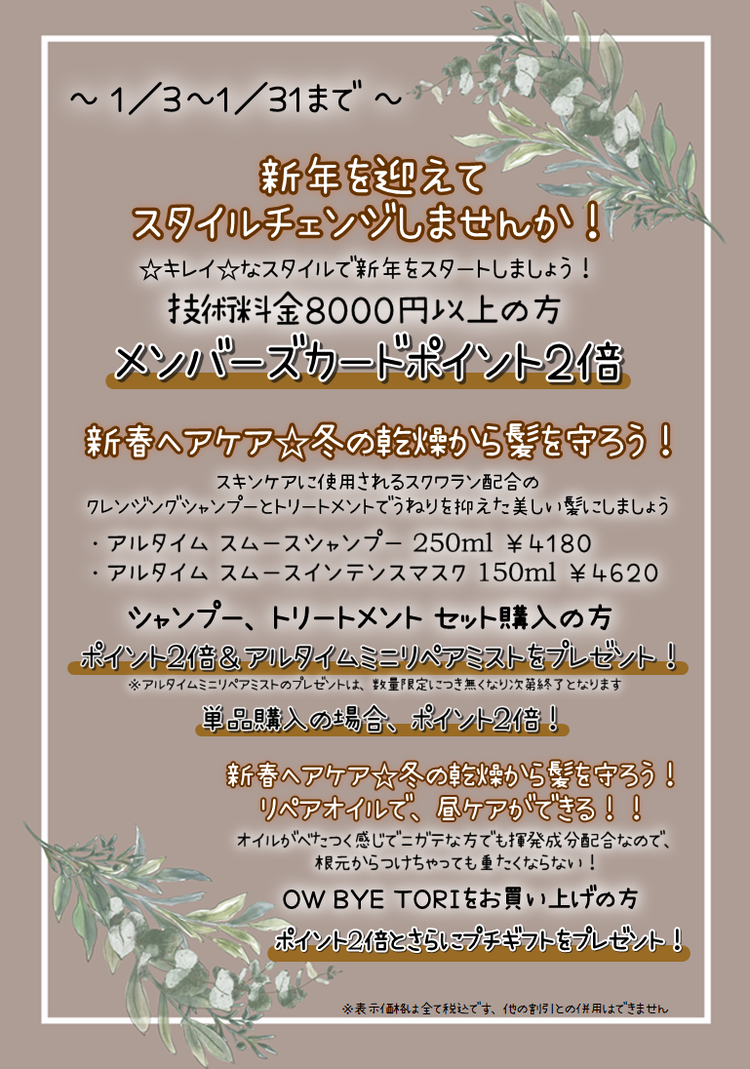 ※ご不明点はサロンまでお問い合わせください